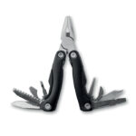 Összecsukható rozsdamentes acél multifunkciós eszköz. Rozsdamentes acél fogóval. 9 funkció. 600D poliészter tokban.